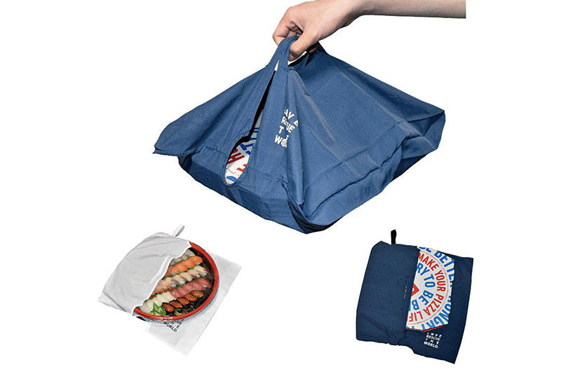お寿司のパックやピザ、大型の精肉トレーなど平たくて大きいモノを水平を保ったまま持ち歩ける、ありそうでなかったエコバッグです。普通のエコバッグはもう大体の方が持っていますが、これは持っていない方が多いので喜ばれるエコバッグです。